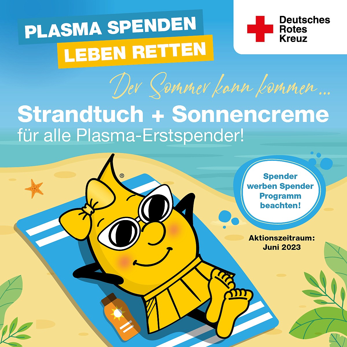 Der Sommer ist da! Und damit aber auch die Gefahr, sich einen Sonnenbrand einzufangen. Ein guter Schutz der Haut ist enorm wichtig und wir möchten unsere Plasmaspenderinnen und Spender in Zwickau gut geschützt und mit nagelneuem Badetuch an den Strand schicken.